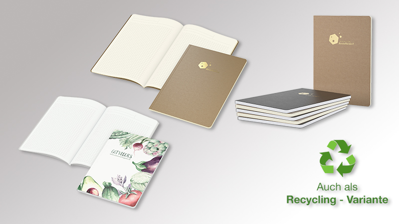 Ab 4,50 € / Stück (A5) oder ab 5,95 € / Stück (A4) – Recycling Variante ebenso.